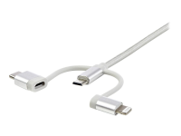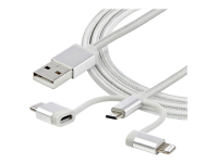 3.3 ft / 1m - Lightning / USB-C / Micro-USB - Braided - MFi Certified - USB 2.0 - 3 in 1 Charging (LTCUB1MGR) - USB-kabel - USB (hann) til Micro-USB type B, Lightning, USB-C (hann) - 1 m - sølv